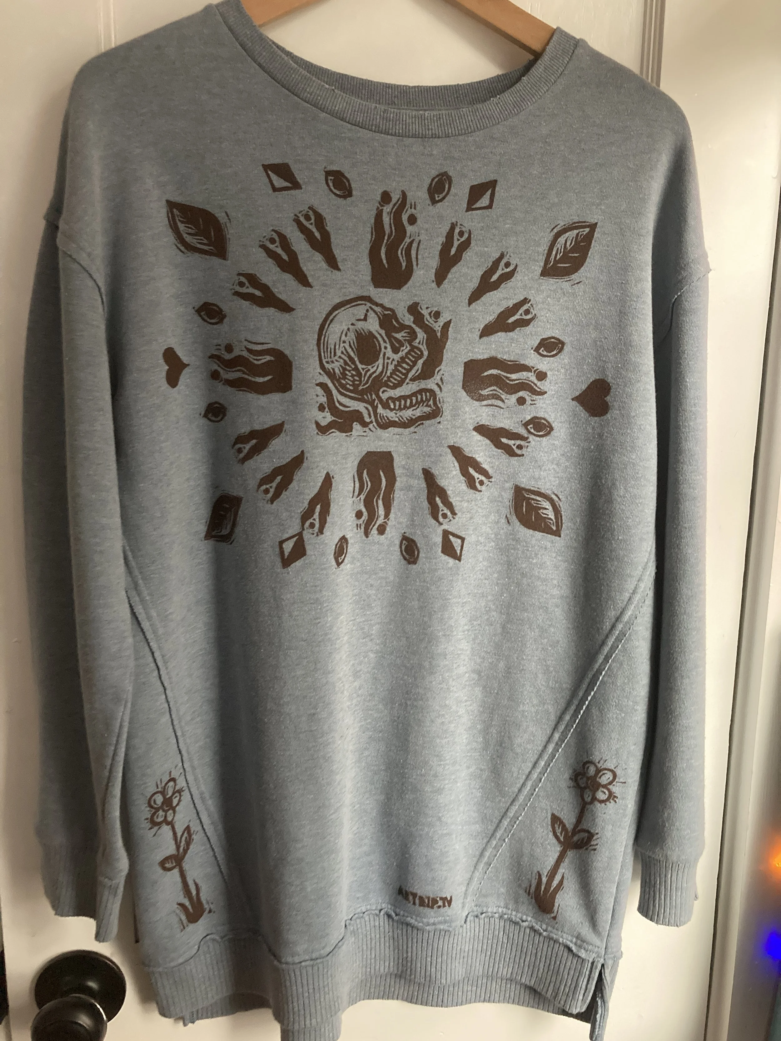 Hand-Printed Lino Cut Garments is a new project of making 1 of 1, hand printed garments using hand cut linoleum blocks.